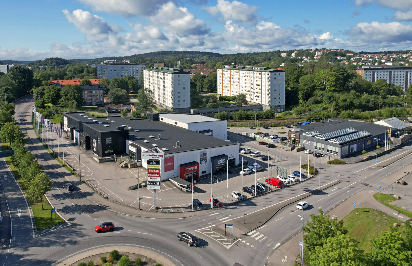 Fastigheten rymmer handel och friskvårdsytor, nära till centrum, Högskola, Knalleland, Borås Arena samt naturreservatet Rya Åsar.